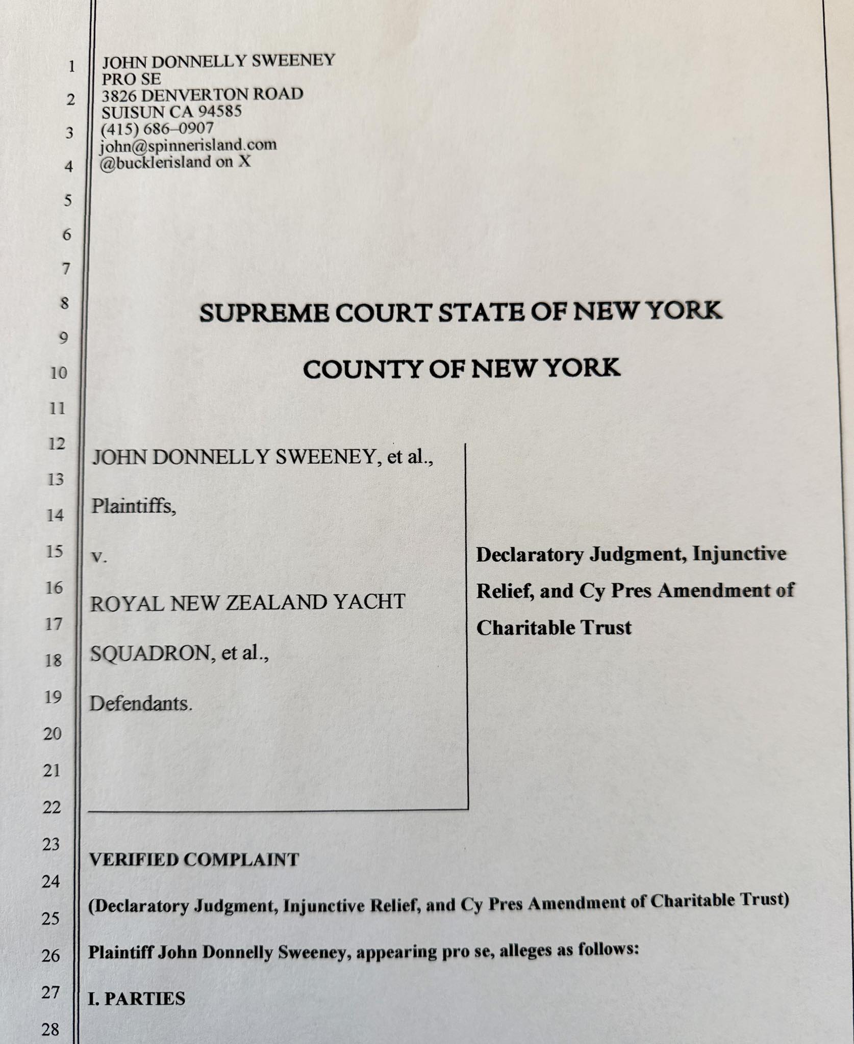 Le 12 février 2026, j’ai déposé une plainte juridique officielle auprès du Bureau des Charités du Procureur général de New York concernant de graves violations de l’America’s Cup Deed of Gift, une fiducie caritative permanente de New York.