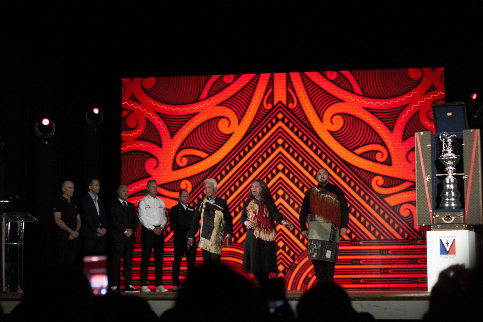 Les 5 CEOs remontaient ensuite sur scène avec une cérémonie maori. Le public a eu droit à un accueil culturel impressionnant mené par Ngāti Whātua Ōrākei, la tribu maorie (iwi) d’Auckland, en Nouvelle-Zélande, représentant l’actuel défenseur, le Royal New Zealand Yacht Squadron et l’équipe Emirates Team New Zealand. Ngāti Whātua Ōrākei a salué culturellement la création de l’ACP et a souhaité la bienvenue à toutes les équipes de l’America’s Cup Partnership avant de remettre des pounamu taonga (trésors en jade vert) aux membres fondateurs de l’équipe sur scène. Ces taonga représentent la force, l’héritage de l’America’s Cup, le respect pour toutes les équipes qui l’ont précédée et un lien avec un avenir passionnant.
